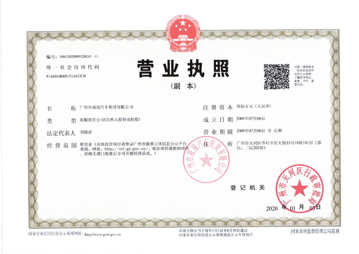 廣州市晟冠汽車租賃有限公司為一家通過廣州汽車租賃行業資質認證的專業汽車租賃公司。成立于2006年8月,是一家實力雄厚的專業租車公司單位。晟冠租車為外資企業、合資企業、國內政府機關、企事業單位、中外賓客、商務人員以及個人提供長期或短期的行政租車、商務租車、公務租車、婚禮租車、會議接待租車、大型活動賽事租車、機場接送租車、旅游租車、活動租車、上下班接送等汽車租賃服務。…